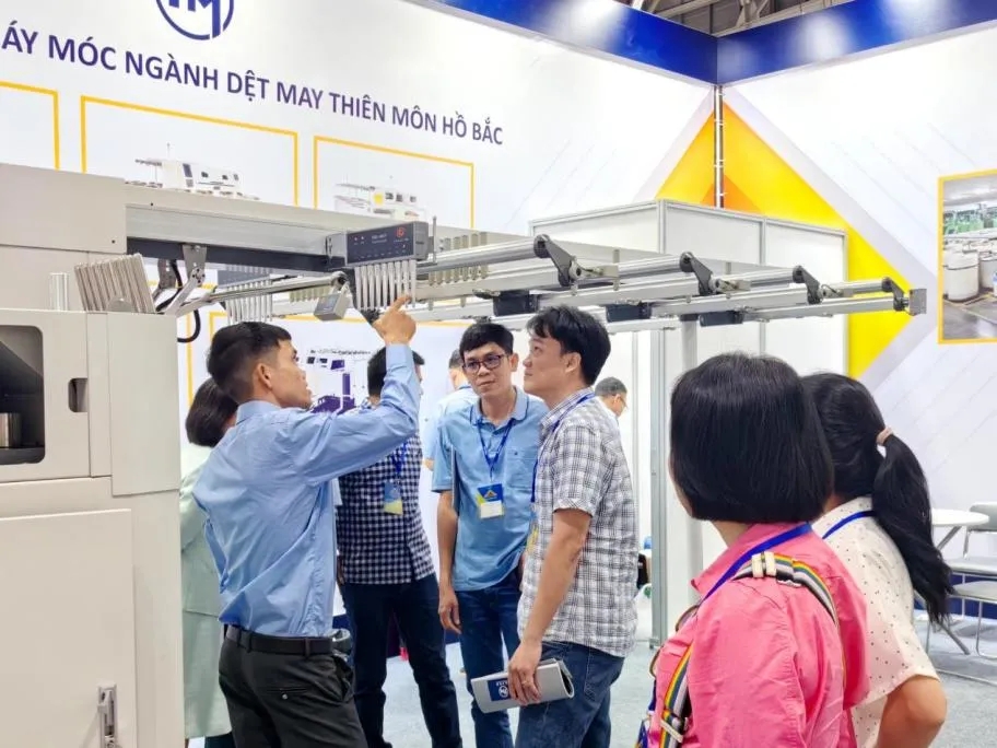 4月10日-4月13日,2024越南西貢國際紡織機(jī)械、服裝、及面輔料展Saigon Tex+Fab(35th)在越南胡志明市舉行,來自21個國家和地區(qū)的1000余家紡織相關(guān)企業(yè)參加了展會。天門紡機(jī)董事長沈方勇率參展團(tuán)亮相展館,引起廣泛關(guān)注。