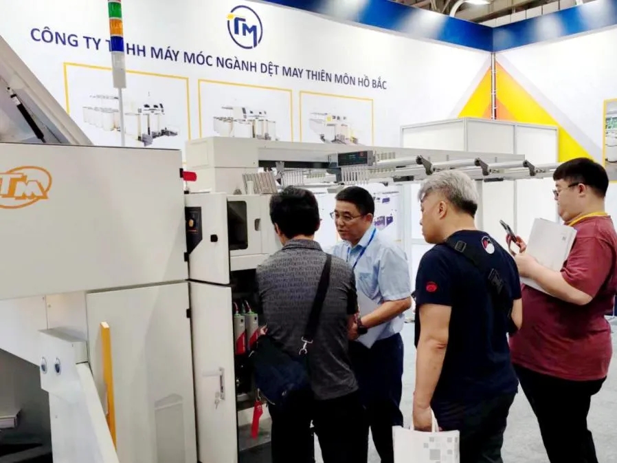 展會期間,越南PHU BAI、BROCSTEX、TPP TEXTILE、PHONG PHU、VICOTEX等多家紡織企業(yè)蒞臨天門紡機(jī)展位進(jìn)行參觀交流,對天門并條機(jī)贊許有嘉,評價其出條成形好,效率高,且性能穩(wěn)定,節(jié)能降耗。前期的一些用戶也來到現(xiàn)場考察,商討繼續(xù)合作的意向。