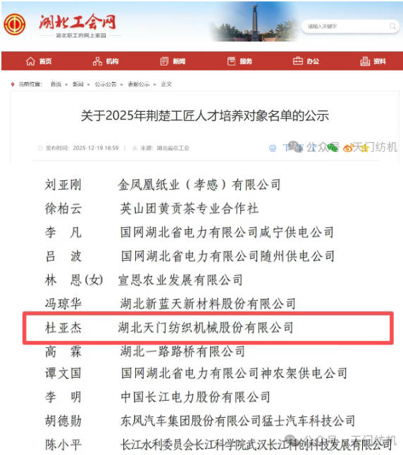 近日,天門紡機總工程師杜亞杰成功入選荊楚工匠人才培養(yǎng)對象,這份榮譽既是對他二十余年深耕紡織裝備研發(fā)領(lǐng)域的認可,更是對他以匠心守初心、以創(chuàng)新破難題的生動詮釋。